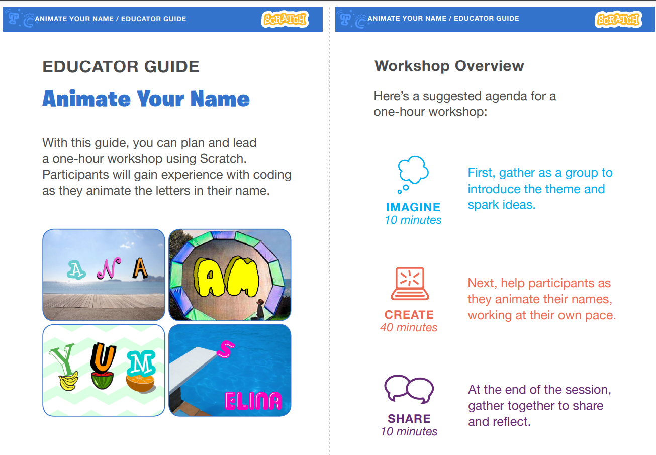 Scratch also offers Educator Guides to support educators in preparing and conducting classes and workshops with Scratch.
